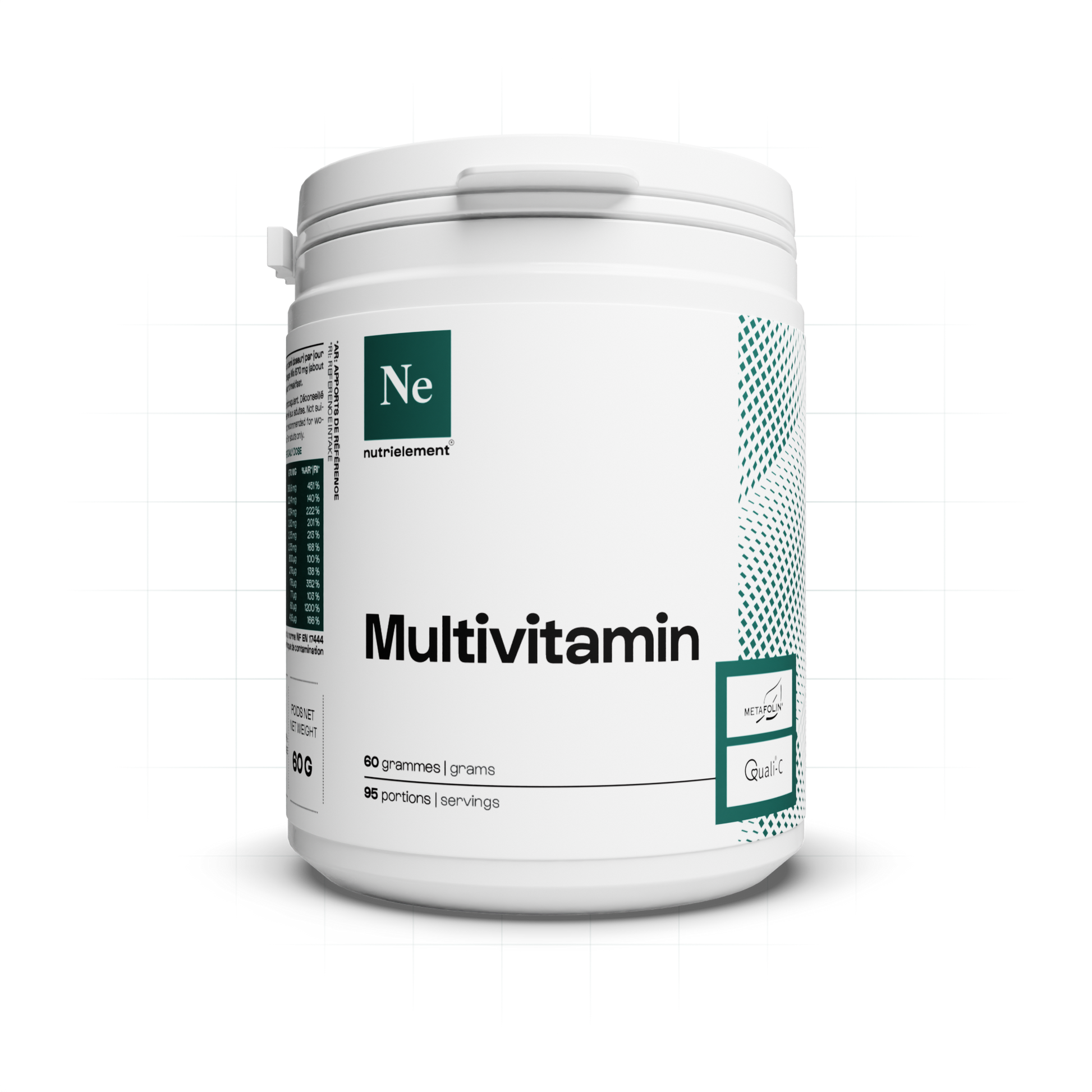 Le Multivitamine Nutrielement est un complexe de 12 vitamines essentielles, renforcé en vitamine C labellisée Quali®C pour une efficacité maximale.